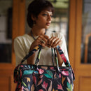 • Removable and adjustable 1.5 wide shoulder strap with shoulder pad and brushed nickel metal hardware.