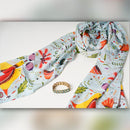 | STYLING / PRINT | Beautiful bright shades of colour Whether you’re dressing up or keeping it casual, our scarves add a touch of sophistication to any outfit. Drape, wrap, or tie your scarf in countless ways to express your unique style. Please note that our scarves are Fashion scarves, they are not meant to keep you warm. |
